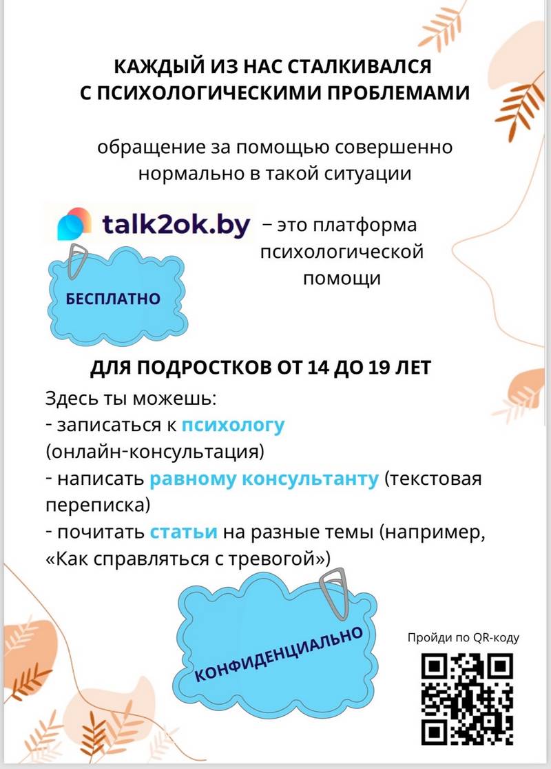 Важно! Психологическая помощь и поддержка подросткам на интернет-платформе Talk2ok.by оказывается ДИСТАНЦИОННО, КОНФИДЕНЦИАЛЬНО, БЕСПЛАТНО.